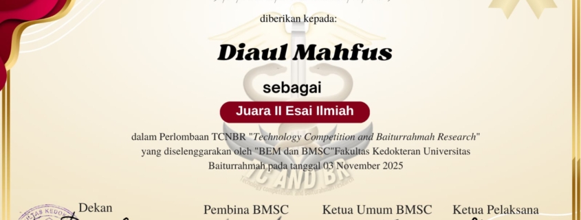 “Karya Tulis Ilmiah yang dikumpulkan akan dinilai, kemudian lima KTI terbaik akan dipresentasikan pada babak final secara online. Pada tahap ini, saya bersaing dengan peserta dari UI, UGM, UNBRAH, dan MARWADEWA,” jelas Diaul.