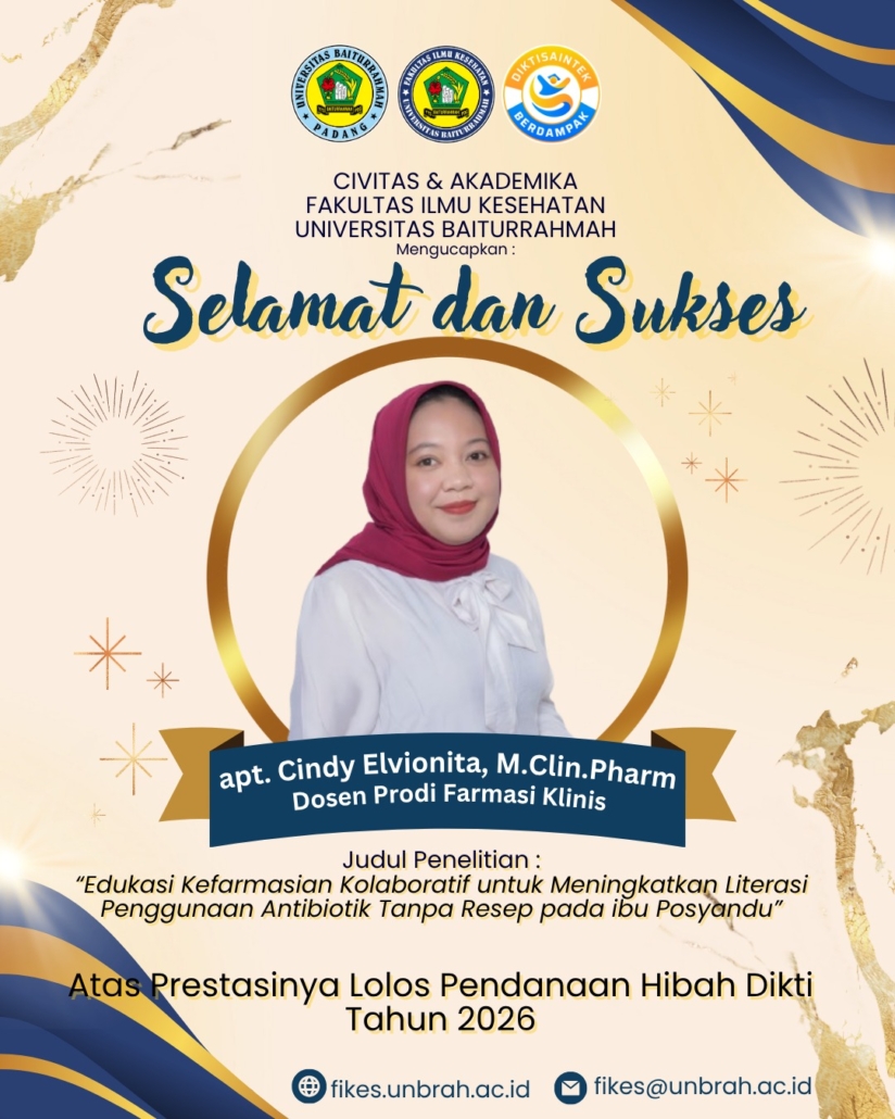 “Kami sangat mengapresiasi capaian dosen Farmasi Klinis yang berhasil memperoleh pendanaan hibah DIKTI. Ini merupakan bukti bahwa dosen UNBRAH mampu bersaing secara nasional dan menghasilkan karya yang berdampak bagi pengembangan ilmu pengetahuan serta kesehatan masyarakat,” ungkapnya.